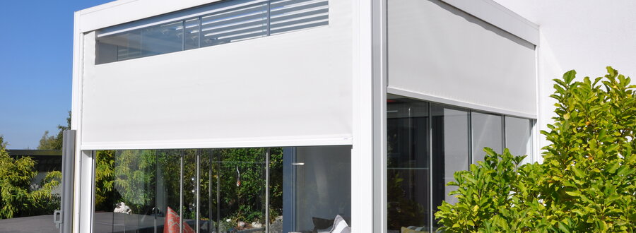 Wintergartenmarkisen bieten einen wirksamen Sonnen- und Hitzeschutz sowie eine gute Belüftung.