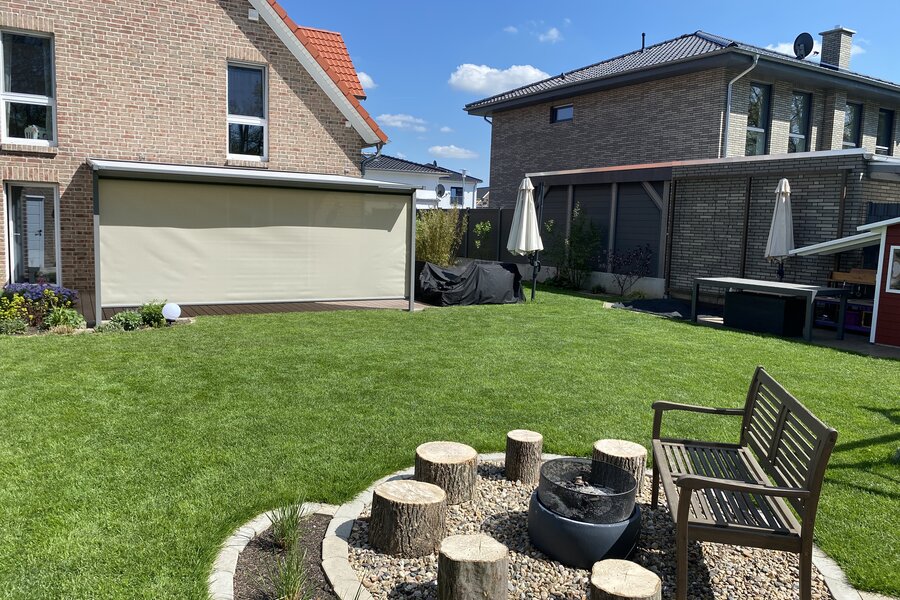 Die verwendeten Stoffe werden mit einem Reißverschlusssystem seitlich fixiert und sorgen so für eine hohe Windstabilität und eine hervorragende Tuchspannung. Dabei sind die textilen Materialien in einer großen Auswahl verfügbar, wodurch sehr schöne optische Akzente gesetzt werden können. Weiterhin zeichnen sich die Stoffe durch UV-Beständigkeit aus, sind wasser- und schmutzabweisend und damit wetterfest.